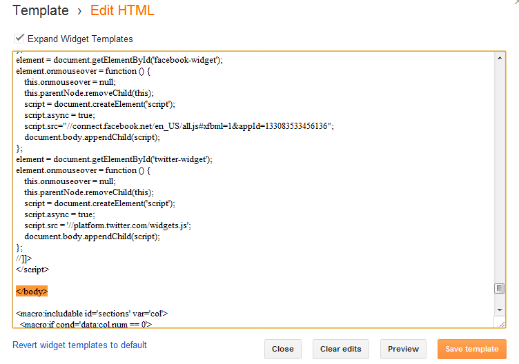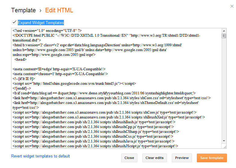 2. Now click the Edit HTML button and tick the Expand Widget Preview option